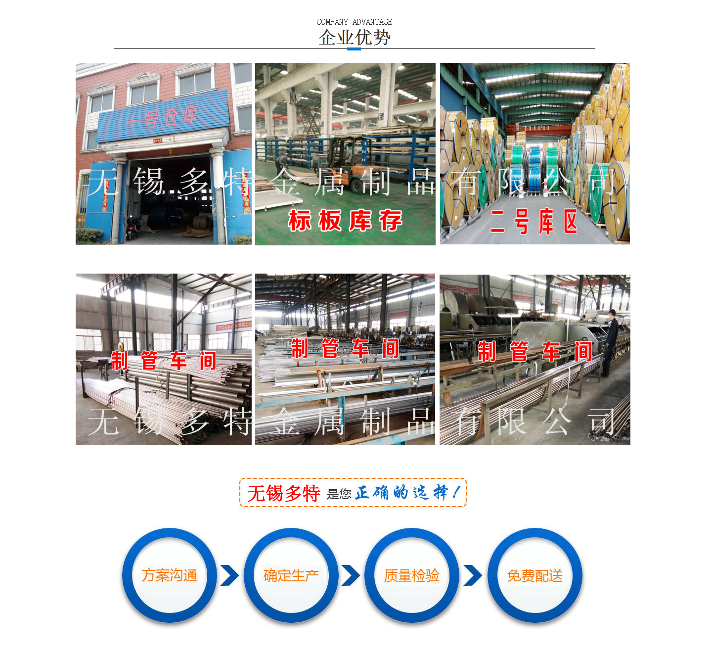 無(wú)錫多特金屬制品有限公司地處于中國(guó)不銹鋼名鎮(zhèn)---更是地處珠江三角的中心地帶,水陸交通便利。多特金屬經(jīng)過(guò)多年來(lái)的持續(xù)發(fā)展,多特金屬已發(fā)展成一間集銷售與加工的不銹鋼企業(yè)。公司秉承“用戶至上、信譽(yù)保證、誠(chéng)字為本”的經(jīng)營(yíng)理念,熱誠(chéng)地為的新老客戶提供服務(wù)。多年來(lái)本公司的產(chǎn)品及質(zhì)量贏得了廣大用戶的肯定和支持,從而使公司經(jīng)營(yíng)實(shí)力不斷增強(qiáng),業(yè)務(wù)領(lǐng)域不斷擴(kuò)展。