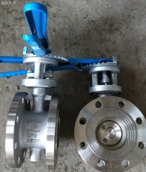 不銹鋼蝶閥作為一種用來實(shí)現(xiàn)管路系統(tǒng)通斷及流量控制的部件,已在石油、化工、冶金、水電等許多領(lǐng)域中得到極為廣泛地應(yīng)用。在已公知的蝶閥技術(shù)中,其密封形式多采用密封結(jié)構(gòu),密封材料為橡膠、聚四氟乙烯等。由于結(jié)構(gòu)特征的限制,不適應(yīng)耐高溫、高壓及耐腐蝕、抗磨損等行業(yè)。現(xiàn)有一種比較先進(jìn)的蝶閥是三偏心金屬硬密封蝶閥,閥體和閥座為連體構(gòu)件,閥座密封表面層堆焊耐溫、耐蝕合金材料。多層軟疊式密封圈固定在閥板上,這種蝶閥與傳統(tǒng)蝶閥相比具有耐高溫,操作輕便,啟閉無磨擦,關(guān)閉時(shí)隨著傳動(dòng)機(jī)構(gòu)的力矩增大來補(bǔ)償密封,提高了蝶閥的密封性能及延長使用壽命的優(yōu)點(diǎn)。但是,這種蝶閥在使用過程中仍然存在以下問題:一、由于多層軟硬疊式密封圈固定在閥板上,當(dāng)閥板常開狀態(tài)時(shí)介質(zhì)對(duì)其密封面形成正面沖刷,金屬片夾層中的軟密封帶受沖刷后,直接影響密封性能。二、受結(jié)構(gòu)條件的限制該結(jié)構(gòu)不適應(yīng)做通徑DN200以下閥門,原因是閥板整體結(jié)構(gòu)太厚,流阻大。三、因三偏心結(jié)構(gòu)的原理,閥板的密封面與閥座之間的密封是靠傳動(dòng)裝置的力矩使閥板壓向閥座。正流狀態(tài)時(shí),介質(zhì)壓力越高密封擠壓越緊。當(dāng)流道介質(zhì)逆流時(shí)隨著介質(zhì)壓力的增大閥板與閥座之間的單位正壓力小于介質(zhì)壓強(qiáng)時(shí),密封開始泄漏。高性能三偏心雙向硬密封蝶閥,其特征在于:所述閥座密封圈由軟性T形密封環(huán)兩側(cè)多層不銹鋼片組成。閥板與閥座的密封面為斜圓錐結(jié)構(gòu),在閥板斜圓錐表面堆焊耐溫、耐蝕合金材料;固定在調(diào)節(jié)環(huán)壓板之間的 彈簧與壓板上調(diào)節(jié)螺栓裝配一起的結(jié)構(gòu)。這種結(jié)構(gòu)有效地補(bǔ)償了軸套與閥體之間的公差帶及閥桿在介質(zhì)壓力下的彈性變形,解決了閥門在雙向互換的介質(zhì)輸送過程中存在的密封問題。采用軟性T型兩側(cè)多層不銹鋼片組成密封圈,具有金屬硬密封和軟密封的雙重優(yōu)點(diǎn),無論在低溫和高溫情況下,均具有零滲漏的密封性能。試驗(yàn)證明池正流狀態(tài)(介質(zhì)流動(dòng)方向與蝶板轉(zhuǎn)動(dòng)方向相同)時(shí),密封面的壓力是傳動(dòng)裝置的力矩和介質(zhì)壓力對(duì)閥板的作用產(chǎn)生的。正向介質(zhì)壓力增大時(shí)閥板斜圓錐表面與閥座密封面擠壓越緊,密封效果越好。當(dāng)逆流狀態(tài)時(shí),閥板與閥座之間的密封靠驅(qū)動(dòng)裝置的力矩使閥板壓向閥座。隨著反向介質(zhì)壓力的增大,閥板與閥座之間的單位正壓力小于介質(zhì)壓強(qiáng)時(shí),調(diào)節(jié)環(huán)的彈簧在受載后所儲(chǔ)存的變形能補(bǔ)償閥板與閥座密封面的緊壓力起到自動(dòng)補(bǔ)償作用。因此本實(shí)用新型不像現(xiàn)有的技術(shù)那樣,在閥板上安裝軟硬多層密封圈,而是直接安裝在閥體上,在壓板和閥座中間增設(shè)調(diào)節(jié)環(huán)是十分理想的雙向硬密封方式。它將可取代閘閥、截止閥及球形閥本類閥門在管道中一般應(yīng)當(dāng)水平安裝。形式分類按結(jié)構(gòu)形式分類(1)中心密封蝶閥(2)單偏心密封煤閥(3)雙偏心密封蝶閥(4)三偏心密封跺閥按密封面材質(zhì)分類(1)軟密封蝶閥。1)密封副由非金屬軟質(zhì)材料對(duì)非金屬軟質(zhì)材料構(gòu)成。2)密封副由金屬硬質(zhì)材料對(duì)非金屬軟質(zhì)材料構(gòu)成。(2)金屬硬密封蝶閥。密封副由金屬硬質(zhì)材料對(duì)金屬硬質(zhì)材料構(gòu)成。按密封形式分類(1)強(qiáng)制密封蝶閥1)彈性密封蝶閥。密封比壓由閥門關(guān)閉時(shí)閥板擠壓閥座,閥座或閥板的彈性產(chǎn)生2)外加轉(zhuǎn)矩密封蝶閥。密封比壓由外加于閥門軸上的轉(zhuǎn)矩產(chǎn)生(2)充壓密封蝶閥。密封比壓由閥座或閥板上的彈件密封元件充壓產(chǎn)生(3)自動(dòng)密封蝶閥。密封比壓由介質(zhì)壓力自動(dòng)產(chǎn)生。按工作壓力分類(1)真空蝶閥。工作壓力低于標(biāo)堆大氣歷的蝶閥。(2)低壓蝶閥。公稱壓力PN<1.6MPa的蝶閥。(3)中壓蝶閥。公稱壓力PN為2.5--6.4MPa的蝶閥。(4)高壓碟閥。公稱壓力PN為10。0--80.0MPa的蝶閥。(5)超高壓蝶閥。公稱壓力PN>100MPa的蝶閥。按工作溫度分類(1)高溫蝶閥。t>450 C的蝶閥(2)中溫碟閥。120 C<t<450 C的蝶閥(3)常溫蝶閥。一40C<t<;120 C的蝶閥(4)低溫蝶閥。一100<t<一40 C的蝶閥(E)超低溫蝶閥。t<一100 C的蝶閥按連接方式分類(1)對(duì)夾式蝶閥(2)法蘭蝶閥(3)支耳式蝶閥(4)焊接式蝶閥優(yōu)缺點(diǎn)不銹鋼蝶閥的優(yōu)缺點(diǎn)1、不銹鋼蝶閥的優(yōu)點(diǎn)1、啟閉方便迅速、省力、流體阻力小,可以經(jīng)常操作。2、結(jié)構(gòu)簡單,體積小,重量輕。3、可以運(yùn)送泥漿,在管道口積存液體最少。4、低壓下,可以實(shí)現(xiàn)良好的密封。5、調(diào)節(jié)性能好。不銹鋼蝶閥的缺點(diǎn)1、使用壓力和工作溫度范圍小。2、密封性較差。不銹鋼蝶閥按結(jié)構(gòu)形式可分為偏置板式、垂直板式、斜板式和杠桿式。按密封形式可分為較密封型和硬密封型兩種。軟密封型一般采用橡膠環(huán)密封,硬密封型通常采用金屬環(huán)